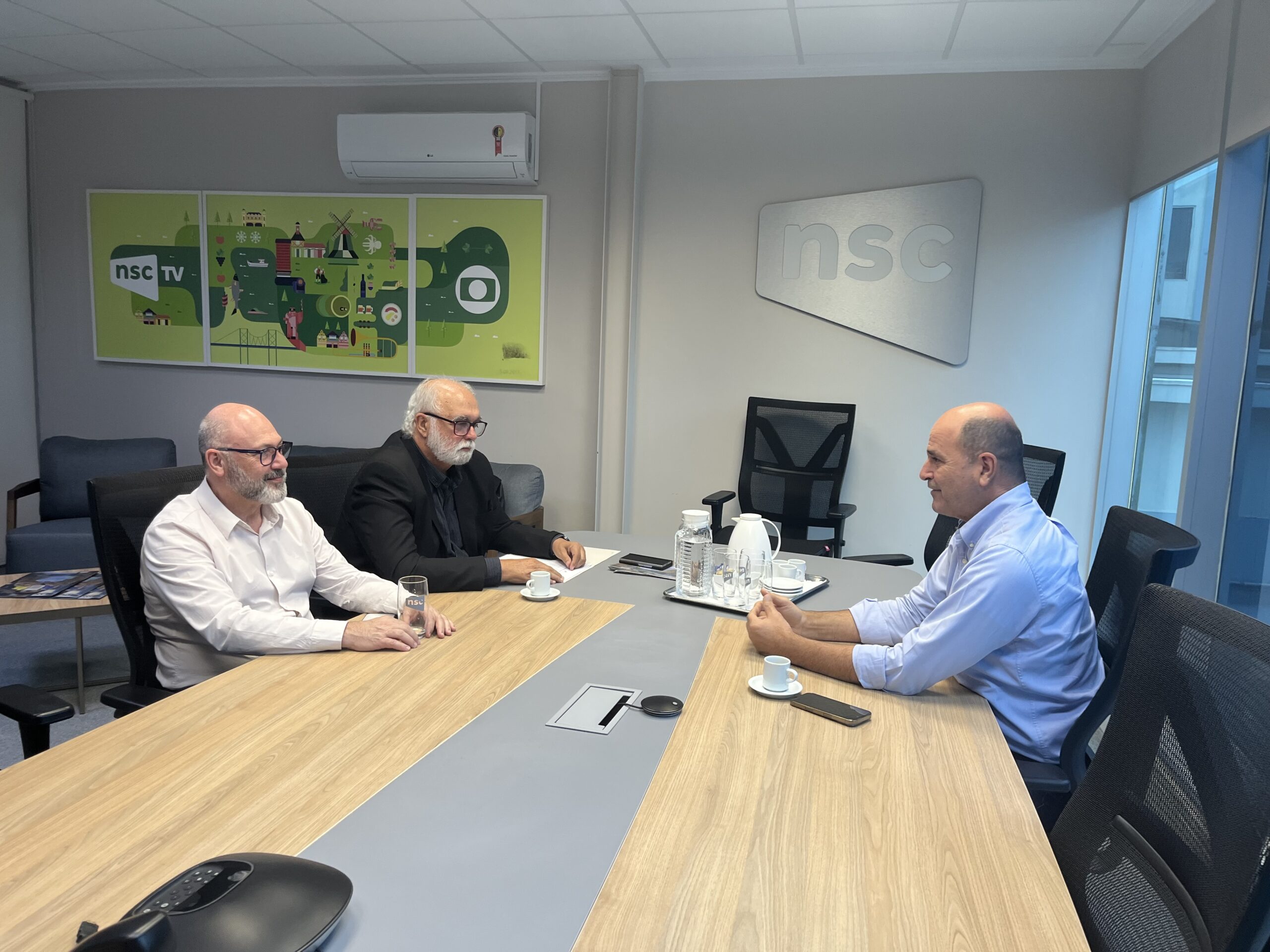 No dia seguinte, à tarde, Roberto e Julio visitaram o Grupo NSC, onde foram recebidos pelo Presidente-Executivo Mário Neves. A reunião começou com o relato dos resultados do Almoço Estratégico “O Diagnóstico da Saúde em Florianópolis”, que reuniu representantes da área pública e privada. Os dirigentes do Movimento também apresentaram uma retrospectiva das ações dos últimos dois anos, com destaque para mobilidade urbana, saneamento, educação, gestão da orla, acompanhamento da regulamentação do Plano Diretor, retrofit do Centro Histórico e missões técnicas. Mário Neves agradeceu a visita e desejou sucesso à nova diretoria.